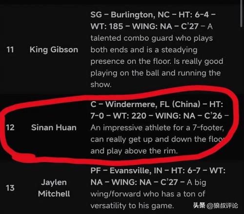 美媒DRAFT ROOM模拟选秀最新一期当中,郇斯楠维持2028年首轮12顺位。
