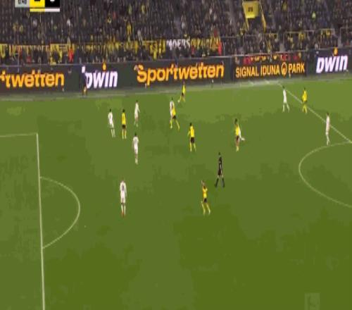 多特在国家德比输给拜仁后,状态还算不错,上周末客场战平弗赖堡连续7轮不败。今天回到主场对阵门兴,多特开场后就很快进入状态,仅仅9分钟,多特中路压上,连续的从中路转移到右侧,再转到中路,再转到右侧,格罗斯禁区边上接球回传,聚勒禁区角上策应斜吊门前,后点无人防守的布兰特小禁区内迎球小角度凌空扫射,皮球 应声入网,多特1:0取得良好开局。