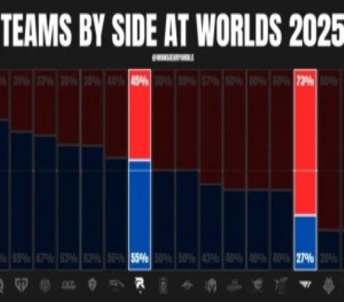 外媒统计T1KTS15选边情况:T1红色方选边最多KT蓝色方胜率100%